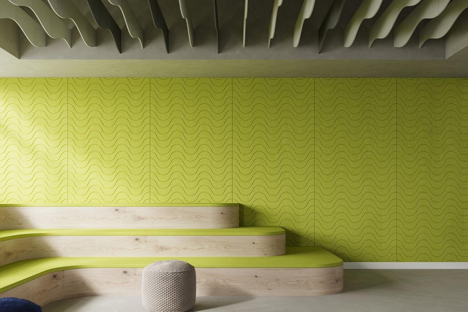 Fracture Panels are an acoustic wall treatment made from the FilaSorb™ collection of solid colours. Precision carved with a bevelled groove to create a unique series of directional linework designs.