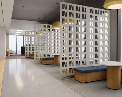 Screens transform sheets of FilaSorb™ felt into beautiful cut-out designs. Screens can be used to preserve light transparency in glass and window applications, partition a room, or simply provide a soundscaping pop of colour and pattern where desired. Choose a colour, select a design, confirm the hanging method, and managing sound in your space has never been more effective.