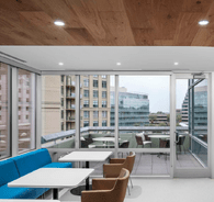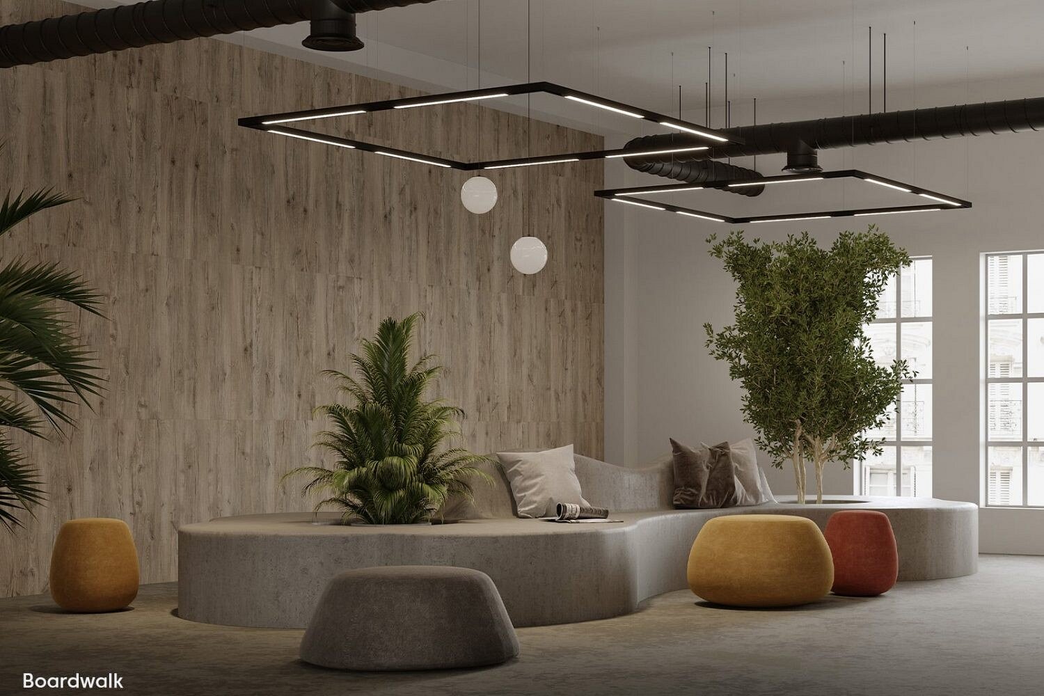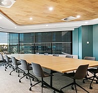 Made from recycled content, Acoufelts acoustic material is crafted into planks with bevelled edges and printed with high resolution scans to mimic the unique look of real woodgrain. Unlike wood however, WoodBeQuiet achieves an impressive NRC of 0.45